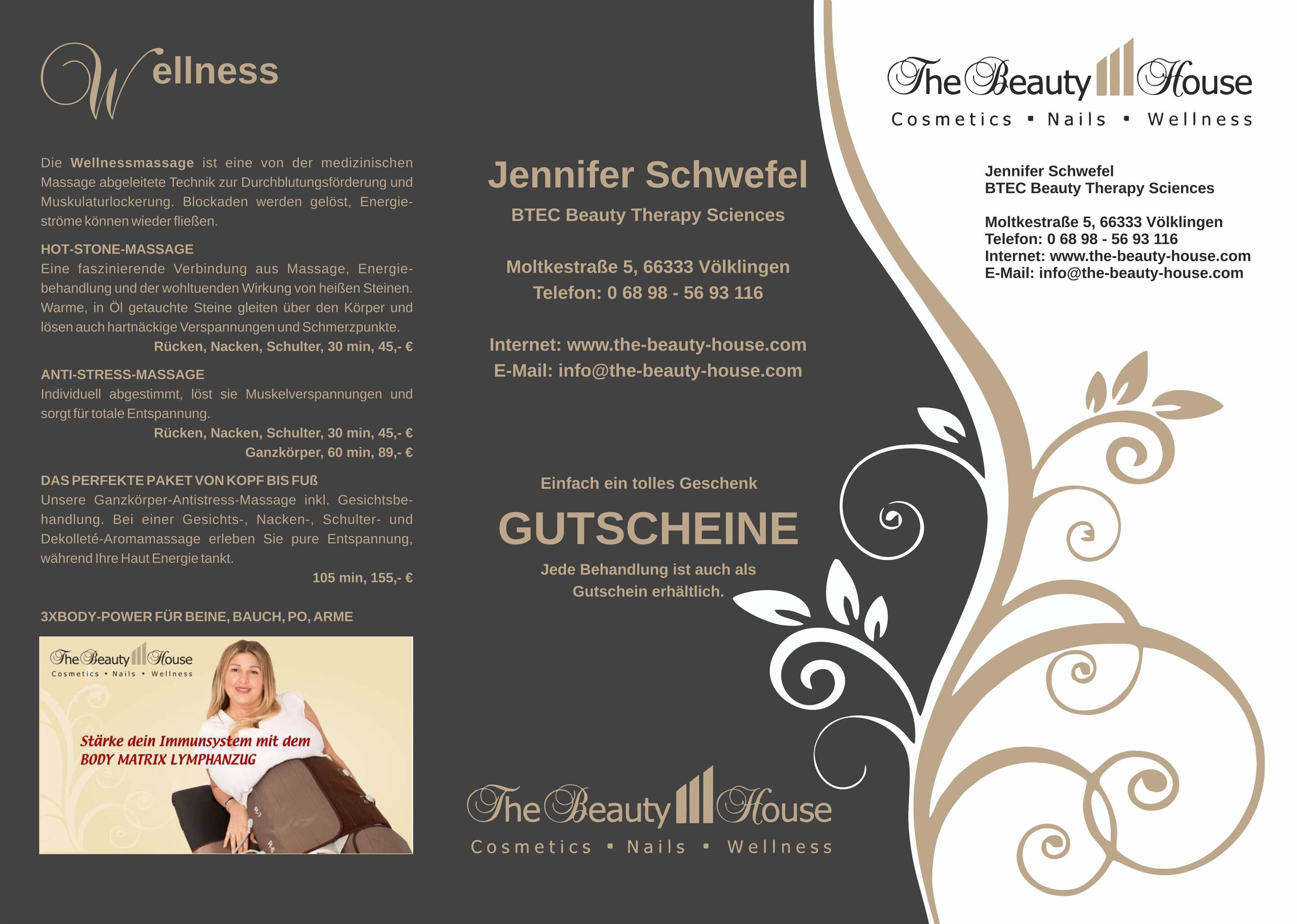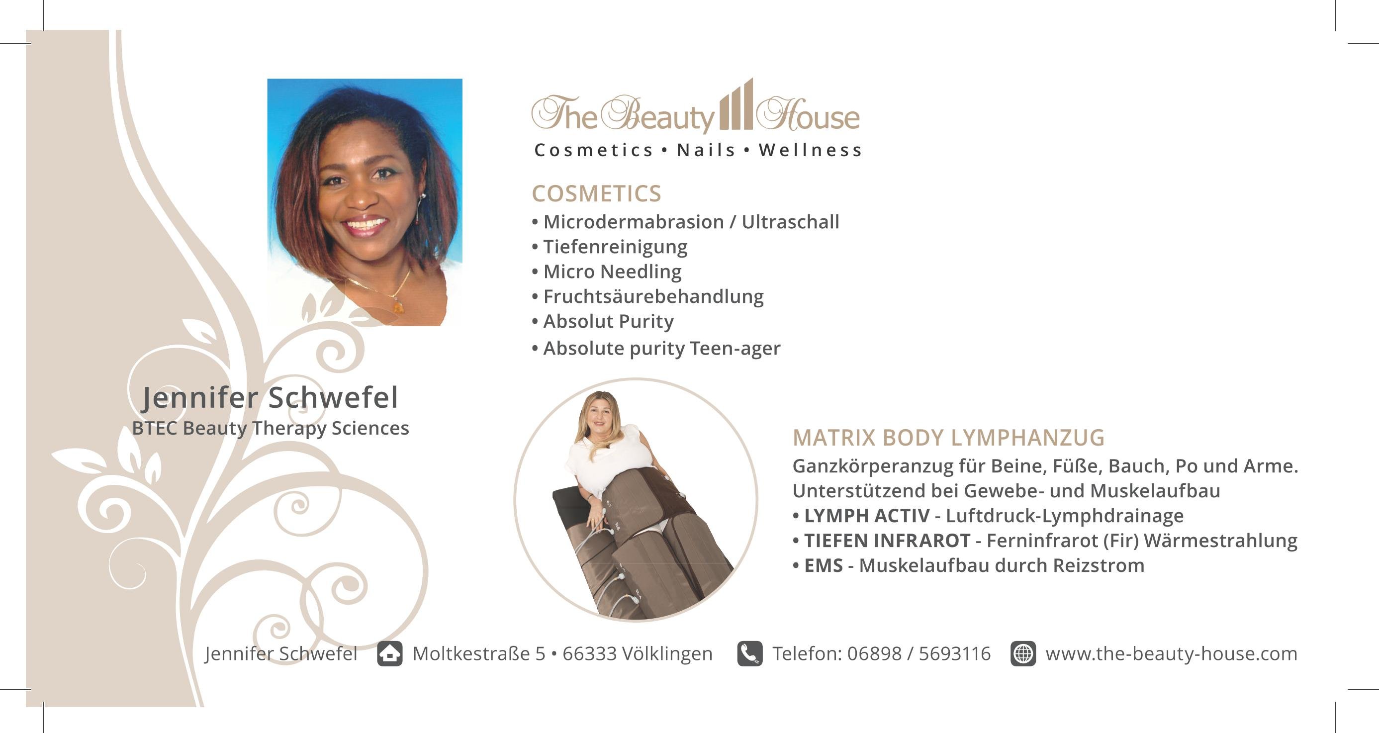 Jennifer Schwefel ▪ BTEC Beauty Therapy Sciences ▪ Moltkestraße 5, 66333 Völklingen ▪ Telefon: 06898 56 93 116 ▪ E-Mail: info@the-beauty-house.com ▪ Vereinbaren Sie doch gleich ihren persönlichen Termin